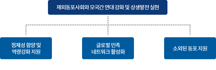 동포사회 육성·지원을 통해 각지 한인사회를 활성화하고, 매년 전 세계 동포를 초청하는 대규모 동포 행사를 통해 동포사회 역량 결집